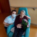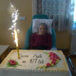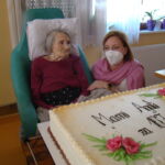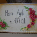 Danes praznuje celih 107. let naša stanovalka, ga. Agata. Domači so jo presenetili s čudovito torto, občina Lukovica s prelepim šopkom, v Domu pa je pater Perčič za njeno zdravje daroval sveto mašo.