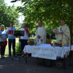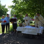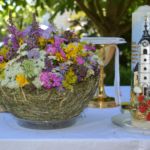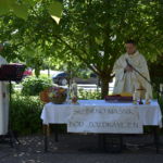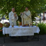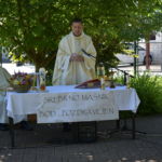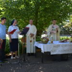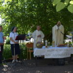 V senci dreves smo postavili oltar in ga okrasili z napisom pozdrava srebrnomašniku. Planinsko cvetje je širilo svoj prijeten vonj. Srebrnomašniku Marku Koširju se je pri oltarju pridružil tudi p. Lojze Bratina, jezuit. Zaposleni in stanovalci smo pri bogoslužju sodelovali vsak po svojih zmožnostih. G. Marko nam je v pridigi orisal svojo pot do duhovniškega poklica.